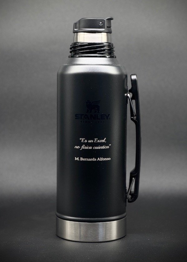 El valor es sólo del grabado láser, no incluye el termo. Se puede agregar en la sección “termos” de nuestra página web