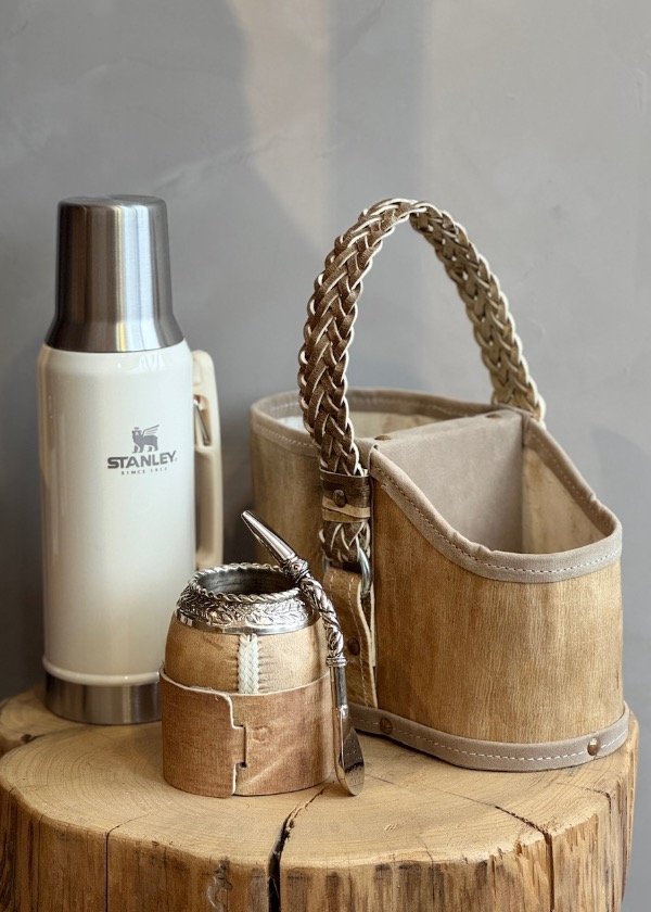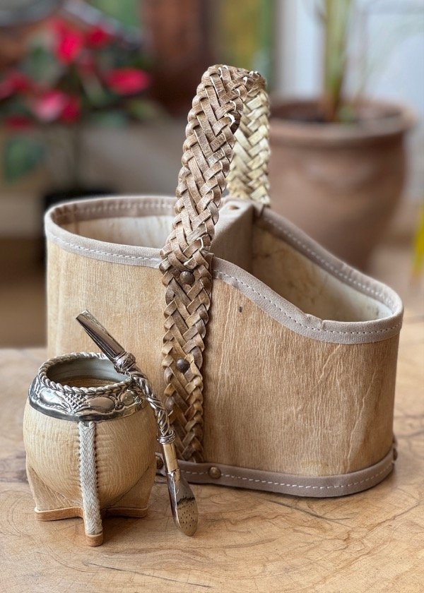 Esta matera tiene dos compartimientos. Apta para mate, bombilla y termo (si tenes yerbera de cuero/cuerina entra también).
