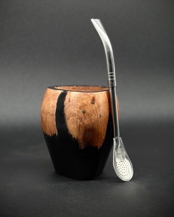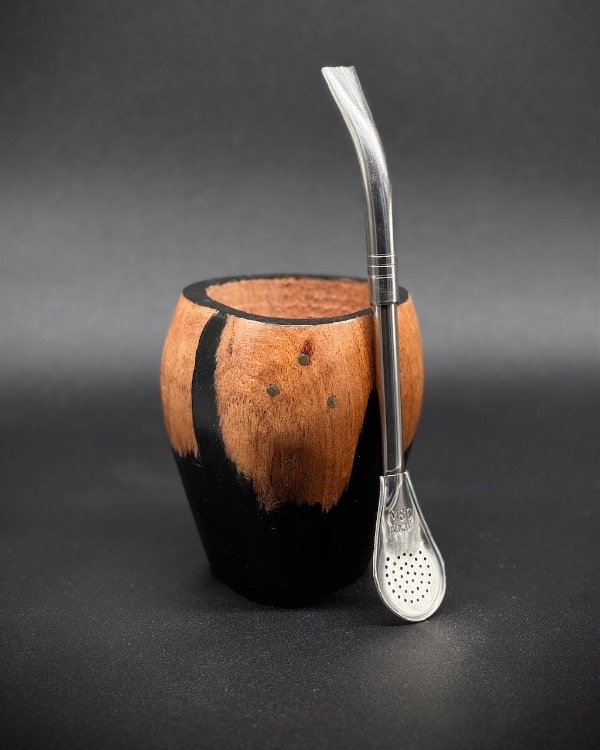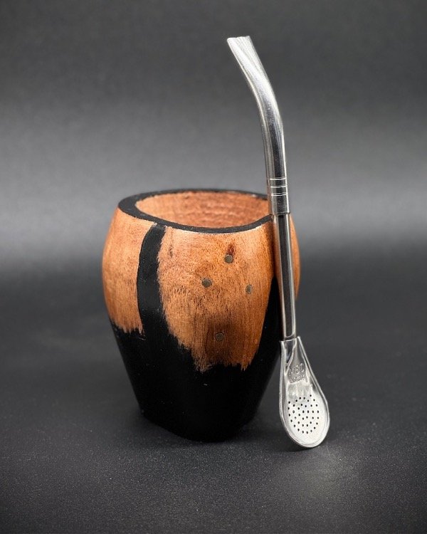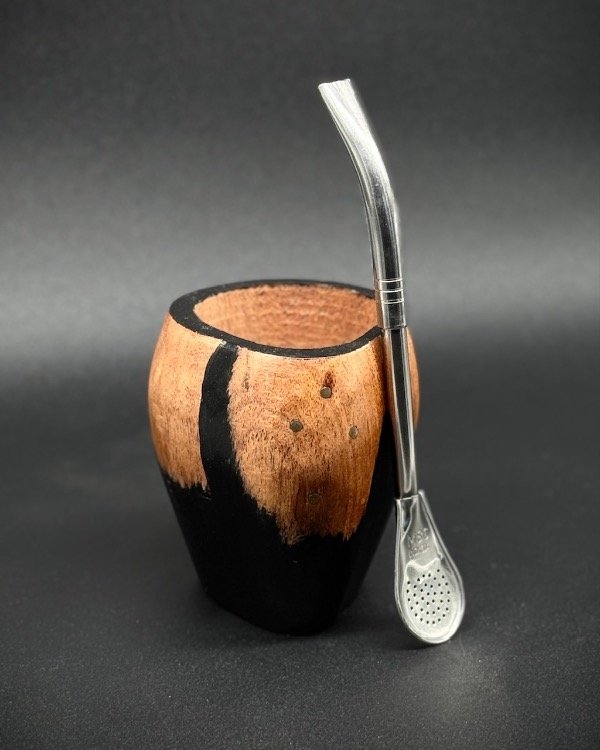Mate de algarrobo pintado a mano artesanalmente. El mate incluye una bombilla pico loro inoxidable de alta calidad