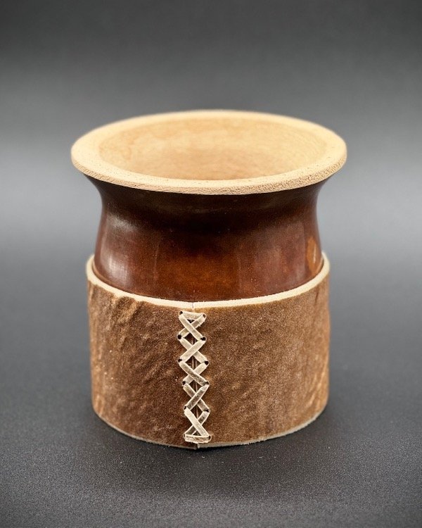 Mate de calabaza pulida de primera calidad. Con base de cuero crudo cocida. Es un mate que se puede tomar de forma individual o acompañado de otra persona, ya que el tamaño de la calabaza es mediana/grande.